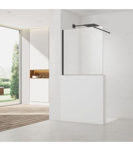 Swiss Aqua Technologies - Pare-muret 100x100cm Paroi en verre Crystal Glass® 8 mm anticalcaire, avec bras et profilés noir mat (SATBWIS100PRC)