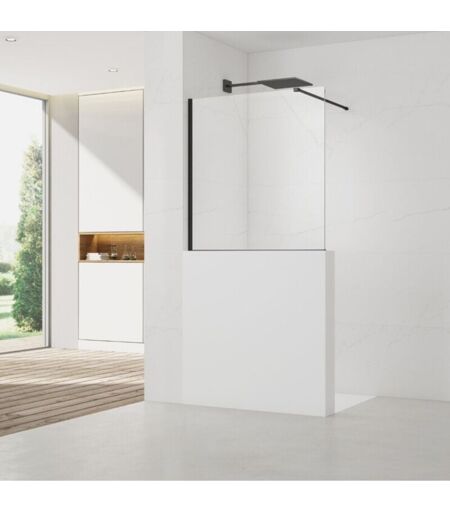 Swiss Aqua Technologies - Pare-muret 120x100cm Paroi en verre Crystal Glass® 8 mm anticalcaire, avec bras et profilés noir mat (SATBWIS120PRC)