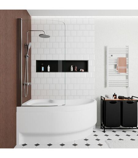 Siko - 150x100 cm Fortuna Plus baignoire asymétrique en acrylique, gauche + tablier + pare-baignoire + pieds, blanc (FO1500LPLUS-SETP1)