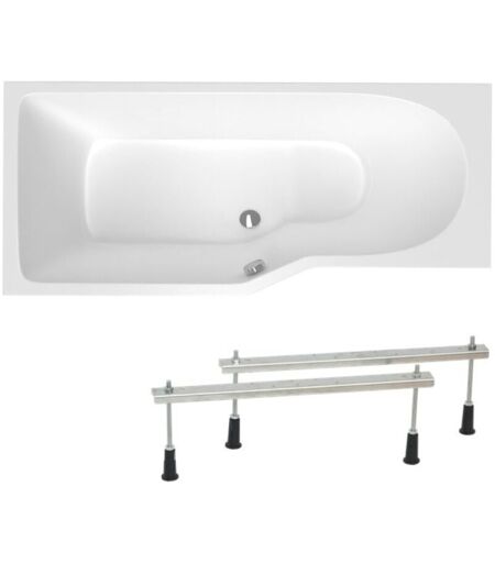Siko - 160x80 cm Laguna Beata Plus baignoire bain/douche asymétrique avec pieds, acrylique, gauche, blanc (BE1600LPLUS-SET)