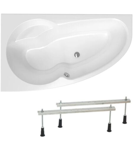Siko - 150x95 cm Laguna Luiza baignoire asymétrique, avec pieds, acrylique, gauche, blanc (LU1500L-SET)