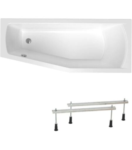 Siko - 160x70 cm Laguna Aneta baignoire bain/douche asymétrique avec pieds, acrylique, droite, blanc (AN1600PPLUS-SET)