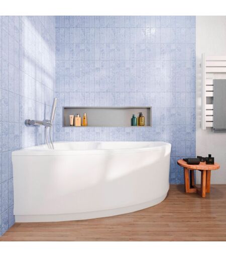 Siko - 150x95 cm Laguna Luiza baignoire asymétrique en acrylique, gauche + tablier 150 cm + pieds, blanc (LU1500L-SET1)