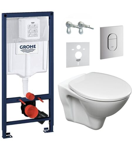 Pack wc Bâti-support Rapid sl + wc suspendu Cersanit S-line Pro + Abattant + Plaque chrome (arenaslpro) - Grohe