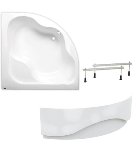 Siko - 150 x 150 cm Synthia Plus baignoire d'angle + tablier + pieds, Acrylique, Gauche et Droite, Blanc (SY1500PLUS-SET1)