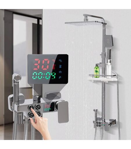 Description de la douche Ce système de douche offre un aspect moderne et élégant qui s'intégrera à tout décor de salle de bains. La finition en acier inoxydable poli résiste à la rouille, à la corrosion et aux rayures, ce qui garantit que votre pommeau de douche conservera son aspect et sa fonctionnalité pendant des années. La surface lisse repousse les bactéries et les moisissures, pour une douche hygiénique et confortable à chaque fois. Avec une installation facile et un débit d'eau réglable, notre pommeau de douche en acier inoxydable est un excellent complément pour toute salle de bains. Caractéristiques principales Matériau de haute qualité : Le mitigeur est fabriqué en laiton massif de haute qualité, ce qui garantit sa durabilité, sa solidité, sa résistance à la corrosion et ses performances à long terme. La tige est fabriquée en acier inoxydable de haute qualité, ce qui lui confère une excellente durabilité et une résistance à la corrosion. Quatre sorties : Vous pouvez passer ...