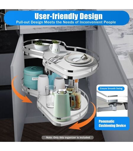 SENDERPICK Soucoupe volante d'angle blanche ouverte à droite Organisateur d'angle coulissant Panier de rangement double pour la cuisine