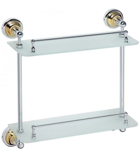 Etagère double de douche avec rail en verre RETRO chromé doré 40x42x12 cm Matière: laiton Finition: chromé doréMatière de la tablette: verre Dimensions: 40x42x12 cm Longueur: 40 cm Hauteur: 42cm Profondeur: 12 cm Poids: 3 kg Installation murale, Kit de fixation fourni.Fabrication européenne ...