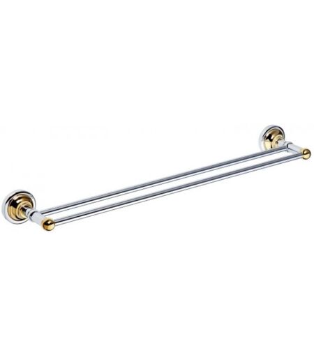 Porte-serviette double RETRO en laiton chromé doré 66,5x6,5x12 cm Matière: laiton Finition: chromé doréDimensions: 66,5x6,5x12 cmLargeur: 66,5 cm Hauteur: 6,5 cm Profondeur: 12 cm Poids: 1,5 kg Installation murale, Kit de fixation fourni.Fabrication européenne. ...