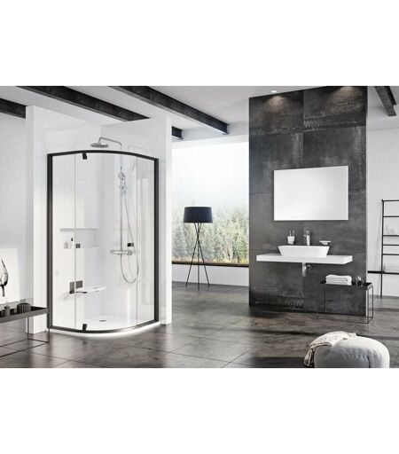 DESCRIPTION GÉNÉRALE Cabine de douche en trois parties avec porte pivotante dimensions : 870-895 x 870-895 mm, hauteur : 1900 mm largeur d’entrée : 490 mm matériau : verre de sécurité, épaisseur : 6 mm, couleur : verre transparent cadre en aluminium, couleur : noir ouverture de la porte : mécanisme pivotant, poignée tournante poignées noires charnières pivotantes en inox, couleur : noir variante : gauche/droite (tournée à 180°) RAVAK AntiCalc® finition de surface du verre installation : 2 pièces fixes et 1 pièce courbée qui sert de porte pivotante, montage dans un angle carrelé/en niche sur un receveur ou directement sur le sol avec un caniveau de douche encastré ou un drain de douche le produit ne comprend pas un receveur de douche, il faut le commander séparément Fabricant : Ravak Série : Pivoter Numéro d'article : 37677300Z1 Garantie : 2 ans Équipement : sans receveur de douche Forme : quandrant Côté plus long [mm] : 900 Côté plus court [mm] : 900 Type d'ouverture : pivotante ...