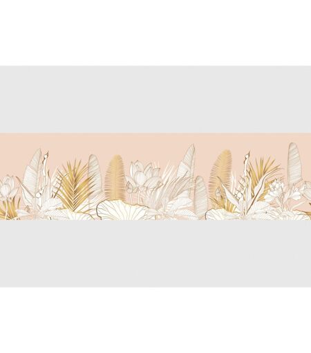 AG ART Frise auto-collante feuilles de palmier et fleurs blanches et dorées