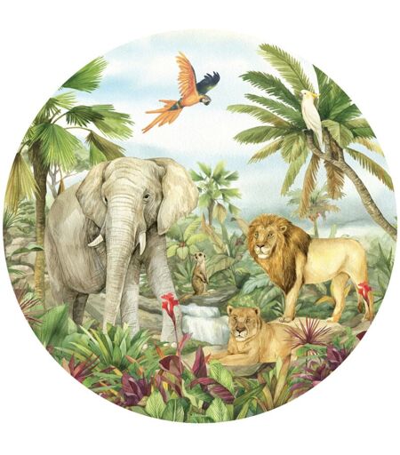 Ag Art - Papier peint intissé auto-adhésif rond animaux de la jungle - Lion, éléphant, perroquet en couleur - 70 x 70 cm