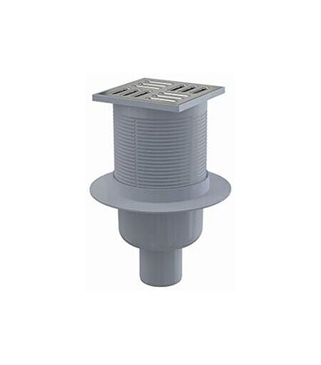 Alca Plast APV Siphon de sol / de douche avec grille en acier inoxydable 105 x 105 mm. Par exemple pour les salles de bains, salles de douche, buanderie, sauna, etc. qui ne sont pas souvent utilisés. Choisissez entre les variantes avec sortie horizontale [APV31] ou verticale [APV32] (voir le matériel et la sélection). Raccordement DN50 (ø50 mm) pour des volumes d'eau jusqu'à 37 l/min - Siphon avec eau de blocage (siphon) et clapet mécanique en cas de dessèchement - Grille d'entrée en acier inoxydable robuste et de qualité supérieure - 105 mm x 105 mm - Très flexible grâce à un réglage / ajustement possible de la hauteur - Bride joint d'étanchéité de 160 mm de diamètre pour faciliter l'insertion du sol - Possibilité de nettoyage facile - Tuyau d'évacuation par retrait Siphon combi résistant aux UV aux influences mécaniques, chimiques et thermiques normales. Numéro d'article : APV31 APV32. Siphon de sol en acier inoxydable Dimensions : voir schéma Évacuation verticale DN 50 Grille de ...
