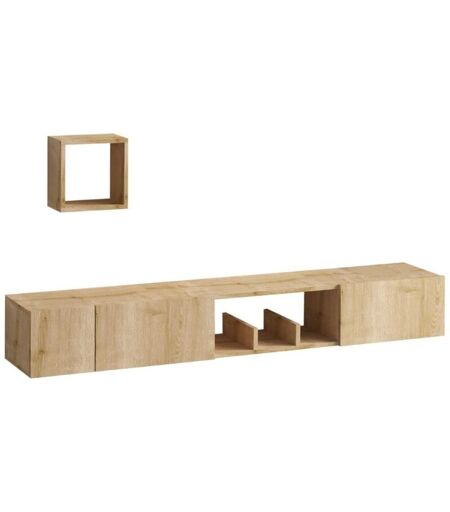Calicosy - Meuble tv suspendu 1 niche 3 portes et 1 étagère murale décor chêne saphir L180 cm - Avior
