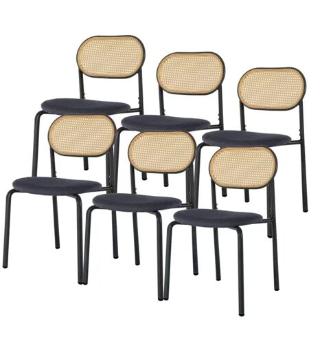 EIFSON Lot de 6 chaises, de salle à manger, avec dossier en rotin tressé, design ergonomique, siège rembourré, pieds réglables, convient pour la salle à