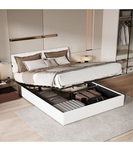 Lit de Stockage Design avec Tête de Lit Rembourrée et Rangement Hydraulique - Blanc Velours Teddy Découvrez ce lit double au design contemporain, alliant élégance et fonctionnalité intelligente. Avec son rangement pratique à système hydraulique, ses ports USB intégrés et son revêtement en velours teddy ultra-doux, il transforme votre chambre en un espace à la fois organisé et raffiné. Rangement Hydraulique Intelligent et Silencieux Optimisez l'espace sans effort ! Le système d'ouverture hydraulique permet d'accéder facilement à un vaste compartiment de stockage sous le matelas, idéal pour ranger la literie, les vêtements de saison ou les affaires occasionnelles. Gain de place assuré avec une fermeture douce et silencieuse. Tête de Lit Rembourrée en Velours Teddy et Design Moderne Confort et esthétique premium ! Le velours teddy exceptionnellement doux et les boutons décoratifs structurés créent une tête de lit rembourrée au style épuré, parfaite pour se détendre avec un livre ou un ...