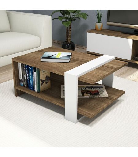 Table Basse Design Scandinave Gaye - L. 80 X H. 35 Cm - Marron Noix