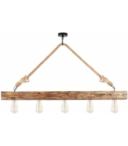 Ozaia - Lustre Long en Bois à 5 Lampes, 100x7 cm, Hauteur 53 cm, Pour Salon Étendu ou Entrée