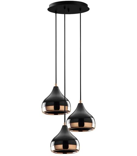 Ozaia - Lustre en métal à hauteur réglable - 3 abat-jours - d. 37 x h. 25/111 cm - Noir et cuivré - yildo