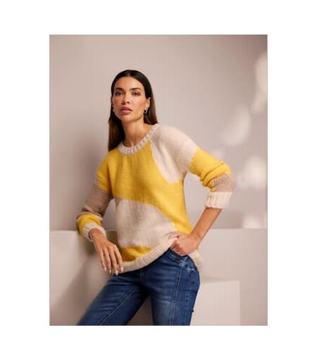 Pull en tricot motif color block tendance - Rick Cardona - jaune soleil-champagne à motifs JAUNE SOLEIL-CHAMPAGNE À MOTIFS 44