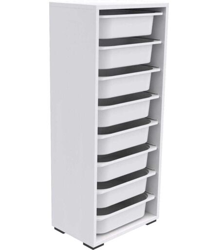 Aspect Matériau principal Panneaux de particules mélaminé Matériaux secondaires Plastique (Tiroirs) Dimensions Hauteur (en cm) 109 Longueur (en cm) 45,50 Profondeur (en cm) 30 Autres caractéristiques Informations complémentaires Epaisseur des planches 18 mm Pieds en plastique Possibilité de le fixer au mur Les tiroirs se retirent entièrement du meuble Livré en kit Oui Poids (en kg) 16 Meuble de rangement 8 tiroirs Cara ...