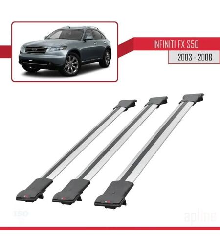 Barres De Toit - Fly - Modèle Railing - Compatible Infiniti Fx (2003-2008) - 3 Barres - Aluminium Gris