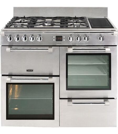 Avec le piano de cuisson Cookmaster 100F324X de Leisure, vous pourrez cuisiner comme un professionnel, grâce à sa table de cuisson cinq feux et ses trois fours. Son design tout inox s'intègre harmonieusement dans tous les intérieurs. Une table de cuisson cinq feux La partie table de cuisson du piano Cookmaster CK100F324X comporte 5 feux gaz et une zone de chauffage des plats vitrocéramique. Les 5 feux gaz à thermocouple, pour une totale sécurité, sont de puissances diverses, entre 1000W, pour des cuissons douces ou des réchauffages, et 4000W pour un coup de feu vif. Le feu central de 4000W spécial Wok est équipé d'une double corolle. La zone virocéramique vous permettra de chauffer les plats ou de les maintenir au chaud.. Trois fours pour réussir vos cuissons La partie basse du piano de cuisson comporte trois fours et un grand espace de rangement. Le four situé en haut à gauche est un petit gril à porte abattante équipé d'un lèchefrite et d'une grille. Ses parois en émail se nettoient manuellement. Le second four en bas à gauche est un four multifonctions programmable de 58 litres à porte latérale. Il se nettoie par catalyse. Ces deux fours sont équipés d'un rail téléscopique pour enfourner et sortir plus facilement vos plats. Le troisième four situé à droite est un grand four de 60 litres à convection naturelle. Les portes des trois fours sont équipés de déflecteurs de chaleur.Avec cette combinaison de trois fours aux spécificités diférentes, vous pouvez organiser vos cuissons comme vous le souhaitez et les accomplir simultanément pour un gain de temps considérable. ...