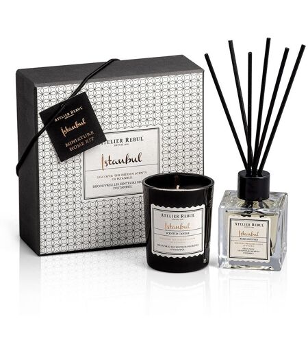 Atelier Rebul Istanbul Miniature Home Kit GiftsetCe kit compact offre une expérience olfactive raffinée qui capture l'âme de la majestueuse ville d'Istanbul. Idéal pour les petits espaces ou comme introduction d'ambiance à notre collection de parfums. Que vous souhaitiez vous faire plaisir ou offrir un cadeau spécial à un être cher, ce coffret ne manquera pas de vous impressionner.>Le coffret contient les bâtons de parfum Istanbul 50ml et la bougie parfumée Istanbul 65g. Les deux produits ont été soigneusement formulés pour créer une ambiance chaleureuse dans chaque pièce. Les bâtons de parfum ont une durée de vie moyenne de 3 semaines, tandis que la bougie parfumée brûle jusqu'à 15 heures. Ingrédients:Geurstokjes : 1-(1,2,3,5,6,7,8,8aoctahydro-2,3,8,8-tétraméthyl-2-naphthy) éthan-1-one, acétate de linalyle, linalol, (R)-p-mentha-1,8-diène (syn : d-limonène), (éthoxyméthoxy)cyclododécane (synonyme : formaldéhyde cyclododécyl éthyl acétal), eugénol, 6,7-dihydro-1,1,2,3,3- pentaméthyl-4(5H)-indanone, mandarine, ext., Huile de citron vert distillée, eucalyptus globulus, ext.Geurkaars : 1-(1,2,3,4,5,6,7,8-octahydro-2,3,8,8-tétraméthyl-2-naphthyl)éthan-1-one, acétate de linalyle, linalol, huile de bois de gaïac, [3R-(3α ;,3aβ ;,6β ;,7β ;,8aα ;)]-octahydro-6 méthoxy-3,6,8,8-tétraméthyl-1H-3a,7- méthanoazulène, (R)-p-mentha-1,8-diène, (éthoxyméthoxy)cyclododécane (synonyme : Formaldéhyde-cyclododécyléthylacétal), eugénol, huile de bergamote exempte de bergaptan, 4,8,8-triméthyl-9-méthylènedécahydro-1,4-méthanoazulène, aldéhyde cinnamique. ...
