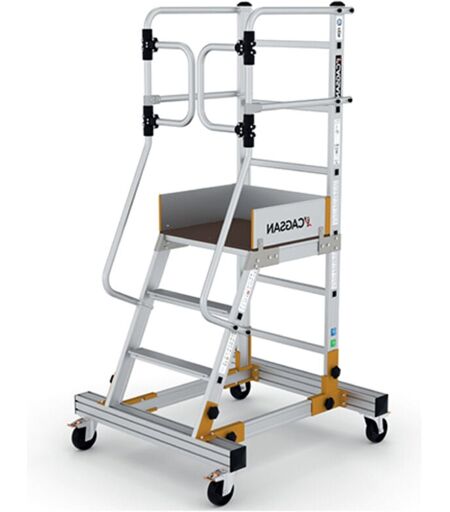 ACCES RAYONNAGE - Escabeau roulant pour des opérations de rayonnage et picking. - Léger et facilement manipulable pour le travail en entrepôts et des déplacement entre les allées. - Vérification de marchandises dans les entrepôts de stockage - Préparation de commande dans des entrpôts de logistique. - Maintenance industrielle en atelier de fabrication SECURITE - Garde-corps complet avec portillon saloon. - Plateforme de travail antidérapante, 0.50 x 0.60m. - Double main-courante pour un accès sûr. - Grandes marches antidérapantes, profondeur 80mm. - Nombre de marches plateforme comprise. DEPLACEMENT FACILE - 4 roues à freins Ø 120mm. - Facilite la mise en rayon ou le picking dans des allées étroites HAUTEUR DE TRAVAIL CONFORTABLE - La hauteur de travail confortable correspond à la hauteur de plateforme + 1.00m - Travailler durablement avec les mains à hauteur du buste. HAUTEUR DE TRAVAIL MAXIMALE - La hauteur de travail confortable correspond à la hauteur de plateforme + 2.00m ...