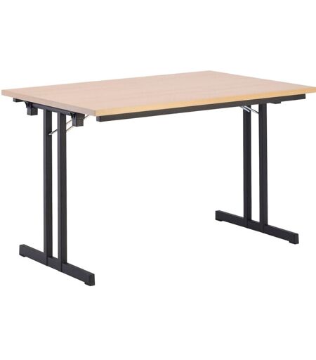 Table pliante à plateau extra-épais, hauteur 720 mm, 1200 x 800 mm, piétement noir, plateau façon hêtre. Produit livré = monté. Coloris plateau = façon hêtre. Coloris du piétement = noir. Modèle de piétement = châssis repliable. Largeur = 1200 mm. Profondeur = 800 mm. Epaisseur plateau = 24 mm. Hauteur = 720 mm. Matériau plateau de table = plateau mélaminé. Forme plateau = rectangulaire. Type de produit = tables pliantes. Plateau épaisseur 24 mm. Chants en PVC du même coloris. Cadre porteur sur toute la largeur. Plateau en mélaminé extra-épais: 24 mm. Chants de coloris assorti, épaisseur 2 mm. Cadre porteur sur toute la largeur en dessous du plateau et piétement carré peint époxy noir ou gris clair. Produits livrés montés. ...