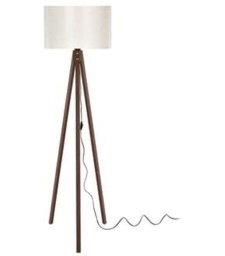 HOMEMANIA Lampadaire trépied ADEN bois E27 136 cm Couleur noyer Abat-jour PVC Style scandinave