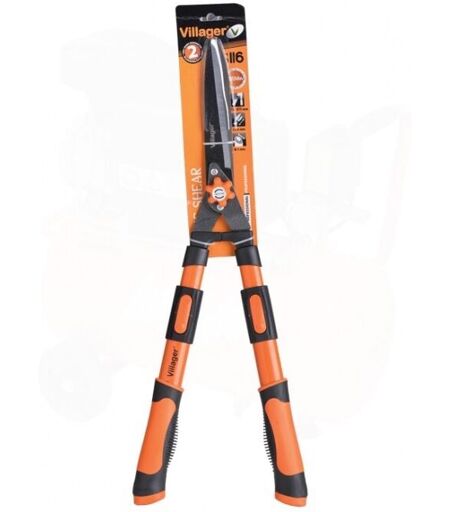 Taille haies manuel et télescopique Villager HS 116 équipé de lames à haute résistance en alliage d'acier et de Manganèse pour des performances de coupe supérieures. Qualité professionnelle. Lame acier et manganèse 65Mn longueur 256 mm résistante et tranchante. Réglage de serrage des lames par molette centrale. Longueur 675 mm pouvant tre porté à 875 mm en version allongé. 5 positions de verrouillage pour l'allongement de la cisaille à haies, réglage par pression avec bouton cranté et ergots. Poignées ergonomiques, robustes et renforcées avec excellente prise en main longueur 150mm pour une bonne prise. Garantie de 2 ans. ...