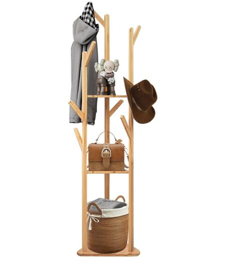 SIFREE Porte-Manteau sur Pied en Bambou avec 9 Crochets pour Vêtements Chapeaux Sacs Rangement