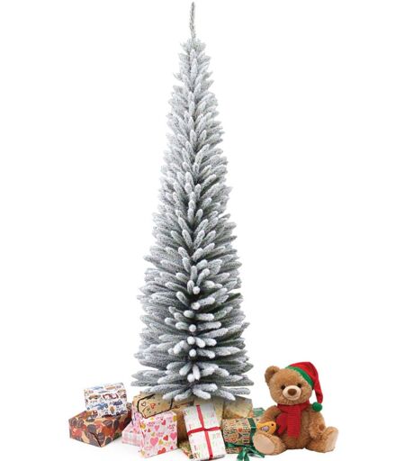DAZHOM Sapin de Noël Artificiel 150CM, 350 Branches Enneigé, Matériel PVC Arbre de Noël, avec Socle en Métal, Décoration de Noël réutilisable