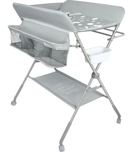 Aqrau - Table à langer bébé avec Panier de Rangement et Roues Verrouillables, Table à Langer avec Ceinture de sécurité, réglable en hauteu, Gris clair