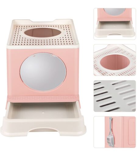 Tiroir extractible : La litière pour chat est livrée avec un bac à litière amovible pour un nettoyage sans tracas. Finition hautement polie qui résiste aux odeurs et aux taches offre un confort tout au long de la journée à nos chatons tout en assurant un nettoyage facile pour leurs parents. Glissez, jetez et remplacez Robuste et stable : Utilisée avec des matériaux de haute qualité et une technologie de plastique avancée, la litière est plus respecuse des chats et bon pour la santé des chats. Dispose d'un motif exclusif qui améliore la stabilité structurelle pour plus de résistance et de durabilité Les chats l'adorent! Il suffit de sortir le tiroir, vous pouvez facilement pelleter et changer la litière pour chat (produit avec pelle). L'espace intérieur spacieux offre suffisamment d'espace pour le chat, permettant aux chats de se déplacer librement sans restriction. Ce bac à litière pour chat est pliable pour gagner de la place. L'ensemble des toilettes à litière pour chats peut être ...