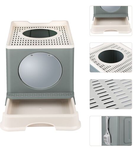 Tiroir extractible : La litière pour chat est livrée avec un bac à litière amovible pour un nettoyage sans tracas. Finition hautement polie qui résiste aux odeurs et aux taches offre un confort tout au long de la journée à nos chatons tout en assurant un nettoyage facile pour leurs parents. Glissez, jetez et remplacez Robuste et stable : Utilisée avec des matériaux de haute qualité et une technologie de plastique avancée, la litière est plus respecuse des chats et bon pour la santé des chats. Dispose d'un motif exclusif qui améliore la stabilité structurelle pour plus de résistance et de durabilité Les chats l'adorent! Il suffit de sortir le tiroir, vous pouvez facilement pelleter et changer la litière pour chat (produit avec pelle). L'espace intérieur spacieux offre suffisamment d'espace pour le chat, permettant aux chats de se déplacer librement sans restriction. Ce bac à litière pour chat est pliable pour gagner de la place. L'ensemble des toilettes à litière pour chats peut être ...