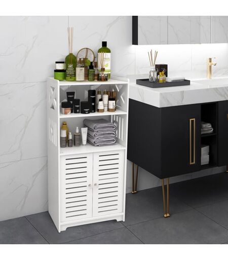 DAZHOM Meuble de Salle de Bain Armoire de Rangement avec 2 Portes 2 Étagères 36x22x75cm Blanc