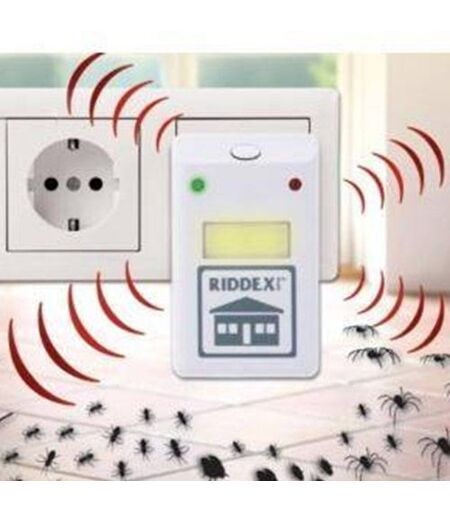 En utilisant le propre réseau électrique de chez vous, il crée moyennant des ondes électriques un bouclier protecteur anti plaie qui maintiendra votre maison libre de rongeurs et d'insectes en toute tranquillité. Certifié par les plus de 5 millions d'unités vendues dans le monde. Expulsez de chez vous tout genre d'insectes et rongeurs sans besoin d'embaucher des entreprises de contrôle de plaies et sans devoir fumiger votre maison avec des poisons dangereux et toxiques pour vos enfants, vos repas, vos animaux de compagnie, etc. Le répulsif d'insectes et rongeurs Riddex éloigne tout genre d'insectes ou rongeurs, ainsi que des rats, des souris, des cafards, des fourmis, des araignées, des termites, des mites, etc. Protection totale contre des rongeurs et des insectes. En plus, il comprend la lumière Led nocturne. ...