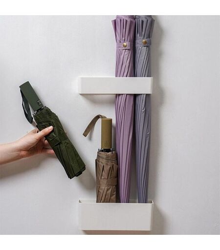 Starlight - Porte-parapluie mural réglable sans perforation avec crochets (blanc)