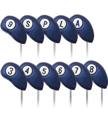 Bleu - 11 Pièces Couverture De Club De Golf Protecteur De Capuchon En Fer Aimants De Fermeture Magnétique 2 Côtés Pour Golfeurs Gauchers Droitiers, Housse De Golf Cuir Synthétique Homme Femme