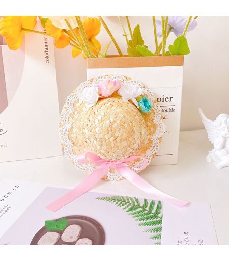 (Rose Fleurs Bleues)Pet Chien Chapeau De Paille Marguerite Chapeau De Soleil Chiot Bowknot Fleur Chapeau De Paille Chiot Chapeau Chien Costume Chapeau Hawaii Chiot Accessoires