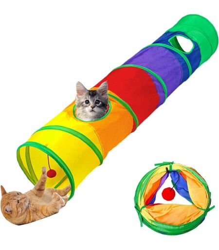 À propos de cet article Design unique : c'est un excellent design avec 2 trous au centre. Votre chat adorera faire sortir sa tête à travers le judas. La balle balançoire attire votre chat dans le tunnel, faisant ressortir l'instinct naturel de chasse de votre chat. Tunnel coloré : les couleurs arc-en-ciel peuvent plus susciter l'intérêt de votre chaton. Donne à vos chats plus de plaisir interactif que les tentes pour chat, les cubes, les griffoirs, les plumes et les jouets de souris. ?Matériau de haute qualité? : cadre solide en acier à ressort avec extrémité protectrice enveloppée de taffetas de polyester 190T indéchirable, ce tunnel pour chat est durable et confortable, sans vous soucier des rayures et des déformations. Pliable et portable : ce tunnel pour chat s'ouvre en quelques secondes et peut être plié facilement et fixé par la bande élastique fournie pour un rangement et un transport faciles. ?Taille? : taille 120 cm de long, diamètre d'ouverture du tunnel 25 cm, parfait pour la plupart des chats adultes, chatons et lapins en porte et en extérieur. ...