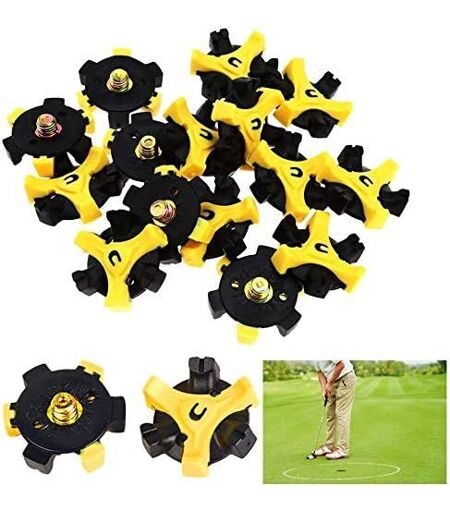 Respectueux de l'environnement - Réduit les marques de dommages sur les verts. Fabriqué en caoutchouc de haute qualité pour plus de confort et de durabilité. L'indicateur d'usure visible « C » devient solide lorsque les pointes doivent être remplacées. Améliore le travail des jambes. Contenu de l'emballage : 20 crampons Meilleure frappe de balle. ...