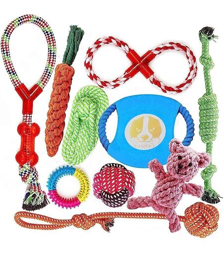 Ensemble Lot De 10 De Jouets Pour Chien, Durables Mâcher Corde Jouet Solitude Petits Et Moyens Chiens Santé (Multicolore), Fournitures Pour Animaux