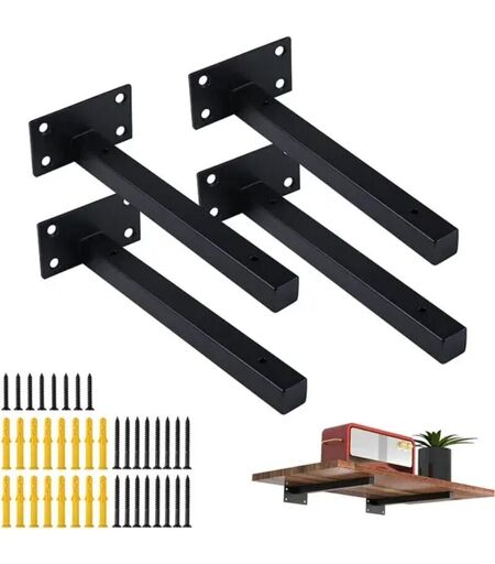 4 Pcs Equerre Etagere Murale Étagère Fixation Invisible pour Chambre Cuisine Atelier avec Vis Noir - 15cm (SKU produit : 93967691 SKU Offre :