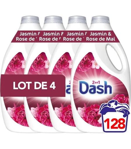 Dash 2en1 Lessive Liquide, 128 Lavages (4x32), Jasmin Et Rose De Mai