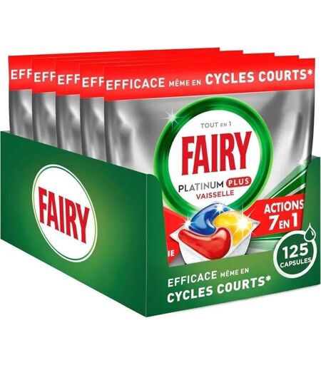 Fairy Platinum Plus Tout-en-1 Pastilles Lave-Vaisselle, 125 Capsules, Citron, Technologie Anti-Terne,Nettoyage Optimal Pour Une Vaisselle Propre Comme Neuve, Redonne De L¿Éclat Et Prévient Le Calcaire ...