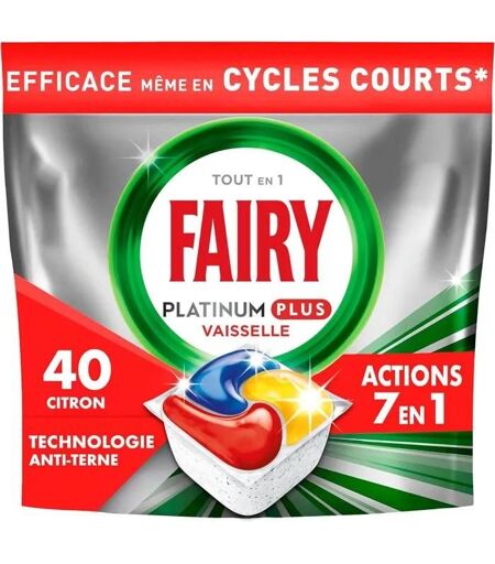 Fairy Platinum Plus Tablettes Lave-Vaisselle All In One, Citron, 40 Capsules, Nettoyage Optimal Pour Une Vaisselle Propre Comme Neuve, Redonne De L¿Éclat Et Prévient Le Calcaire ...