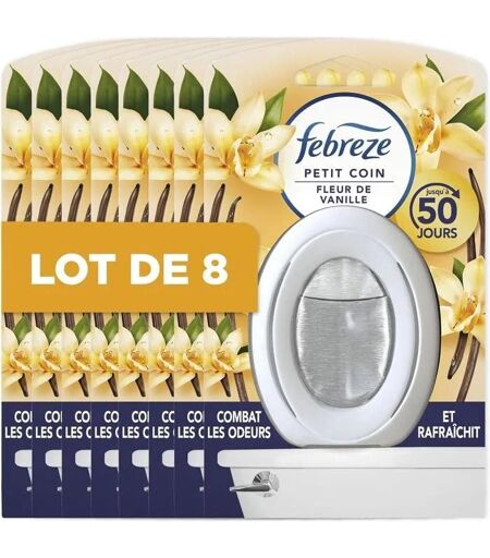 Febreze Petit Coin Et Salle De Bains, Fleur de Vanille (8 x 7,5ml), Liquide Désodorisant En Continu Pour Élimination Et Prévention Des Odeurs ...